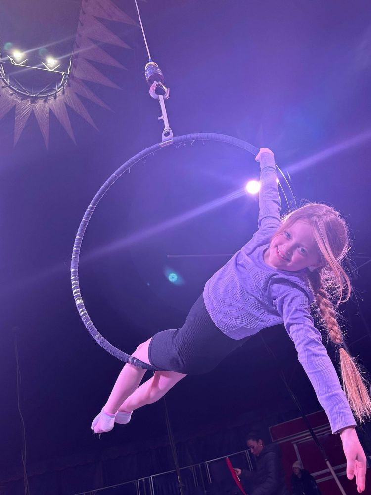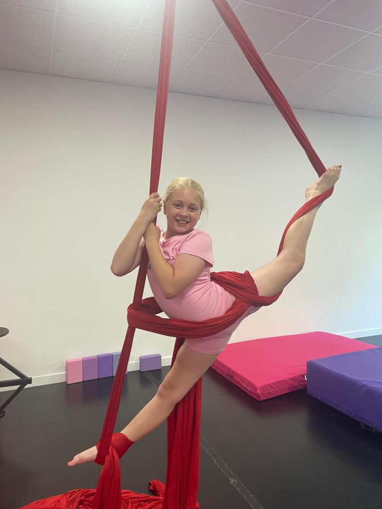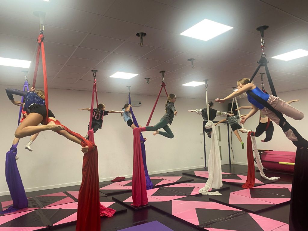 This class involves a variety of circus disciplines which includes our suspended apparatus which students hang from and perform their tricks and movements on, such as; Aerial hoop, Silks, Trapeze, Cloud Swing, Wire, Pole, Rola, Juggling, Poi, Diablo, Tumbling, Clowning, Unicycle, hula Hoop, Contortion, Strength & conditioning & Choreography.